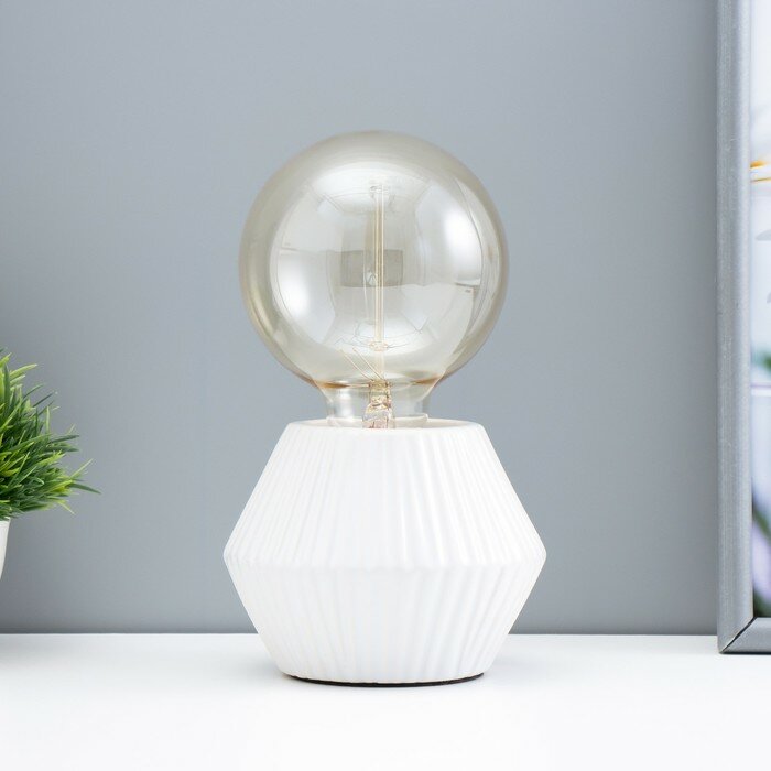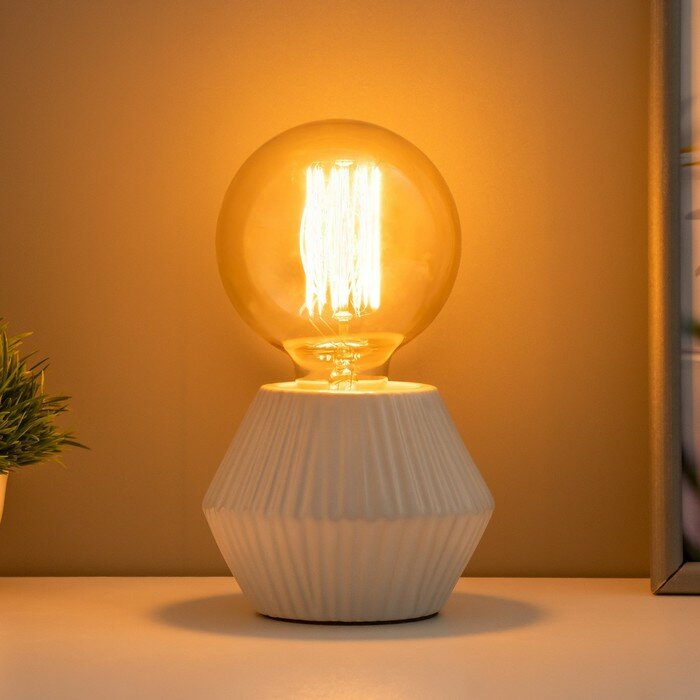 Настольный светильник имеет лаконичный дизайн в стиле “минимализм” и оригинальную форму основания, что позволяет удачно вписать его в любой интерьер современного жилья. Конструкция лампы состоит из керамического основания с лаконичным рисунком, патрона и сетевого провода длиной 1,6 метра. Плафоном в светильнике является декоративная лампа, вкручиваемая вертикально в основание. Рекомендуем использовать филаментные лампы оригинальных форм по артикулам: 9964246, 9964247, 9964248.