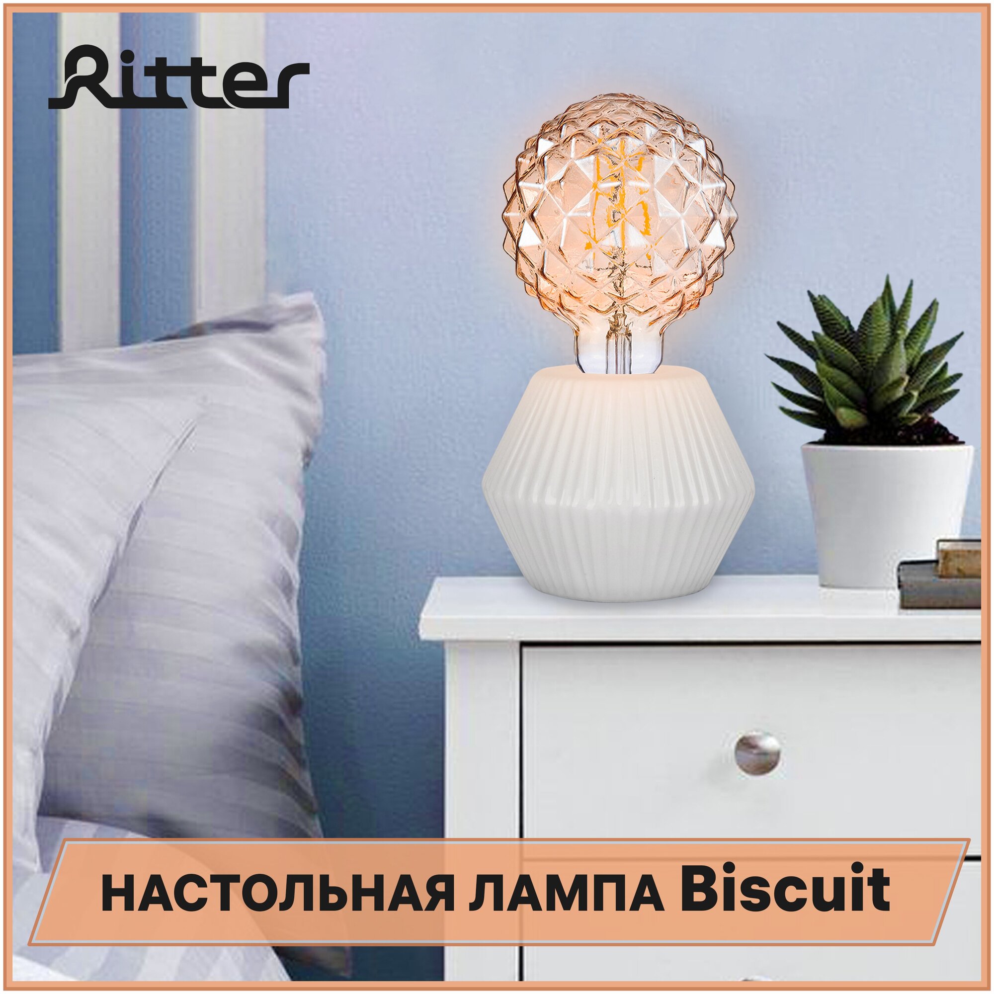 Настольный светильник Ritter BISCUIT используется в качестве дополнительного источника освещения в спальне. Настольную лампу можно использовать в любой комнате, наиболее уместным размещением будет в прикроватной зоне на тумбе.