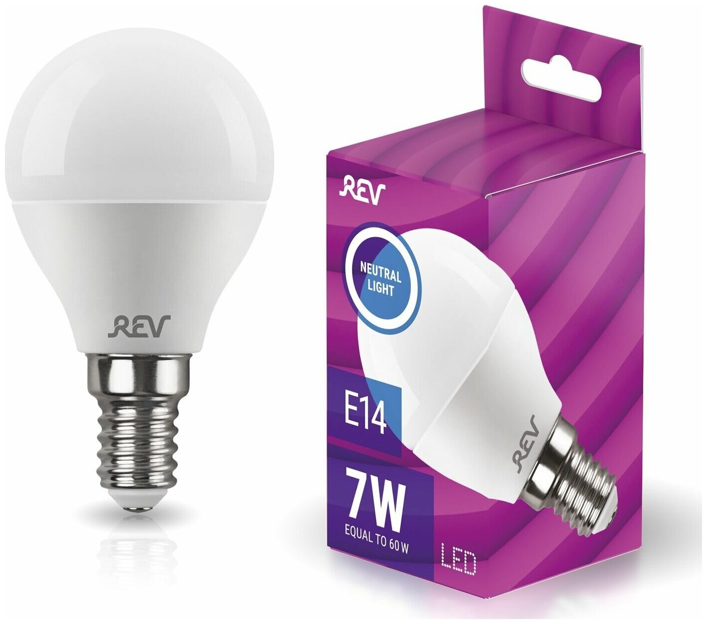 Лампа светодиодная REV G45 E14 7W нейтральный белый свет шар 32341 9