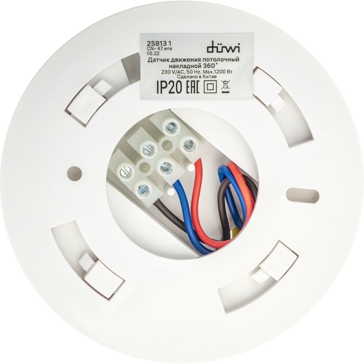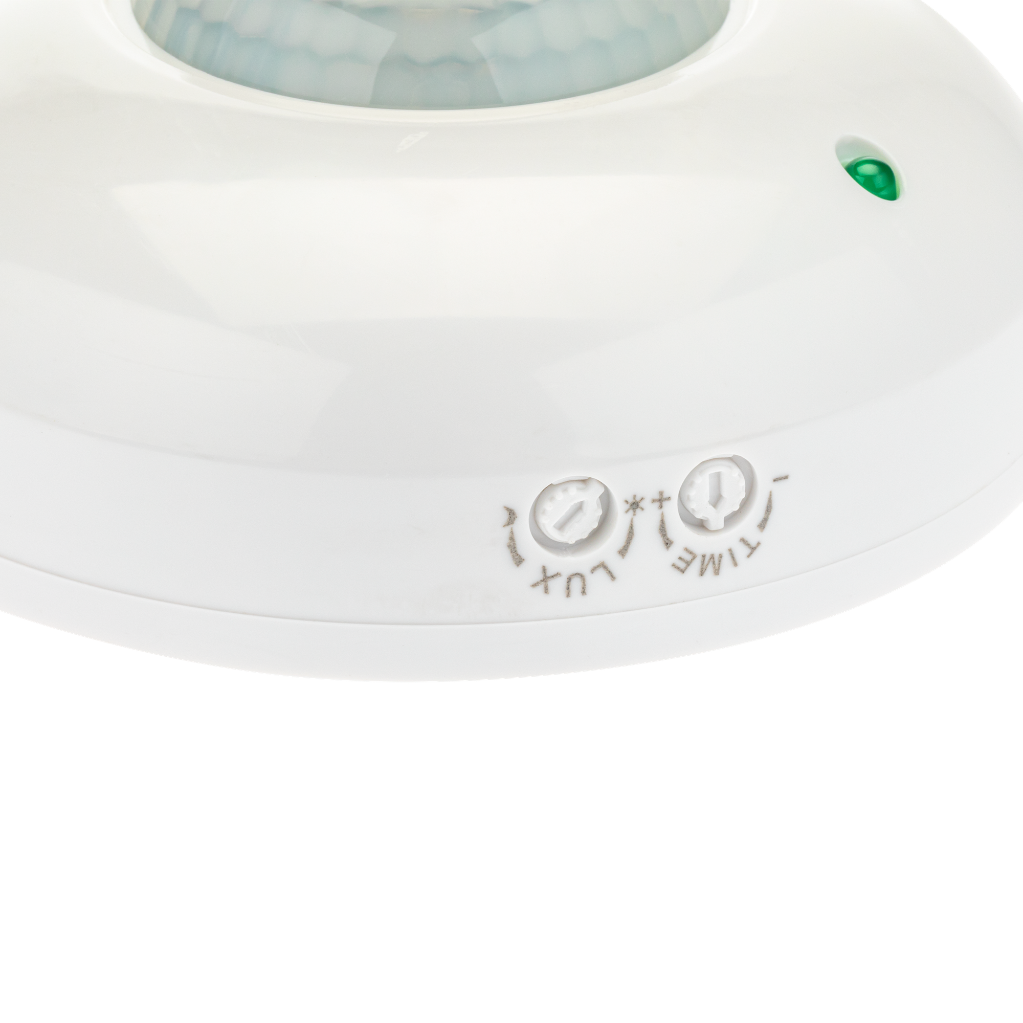 Накладной датчик движения с углом обзора 360 градусов. Цвет: белый. Диаметр 115 мм, высота 58 мм.