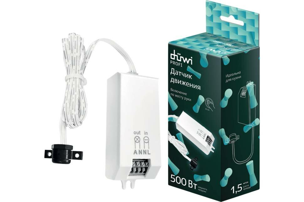 Датчик движения на короткую дистанцию предназначен для включения и выключения нагрузки в зависимости от уровня освещённости и наличия движущихся объектов в зоне обнаружения датчика (до 6 см). Основная область применения - управление по жесту внутренним освещением, электроприборами, устройствами сигнализации и др. Длина провода - 1,5 м. Диаметр установочного отверстия - 13 мм. Способ монтажа - встраиваемый.