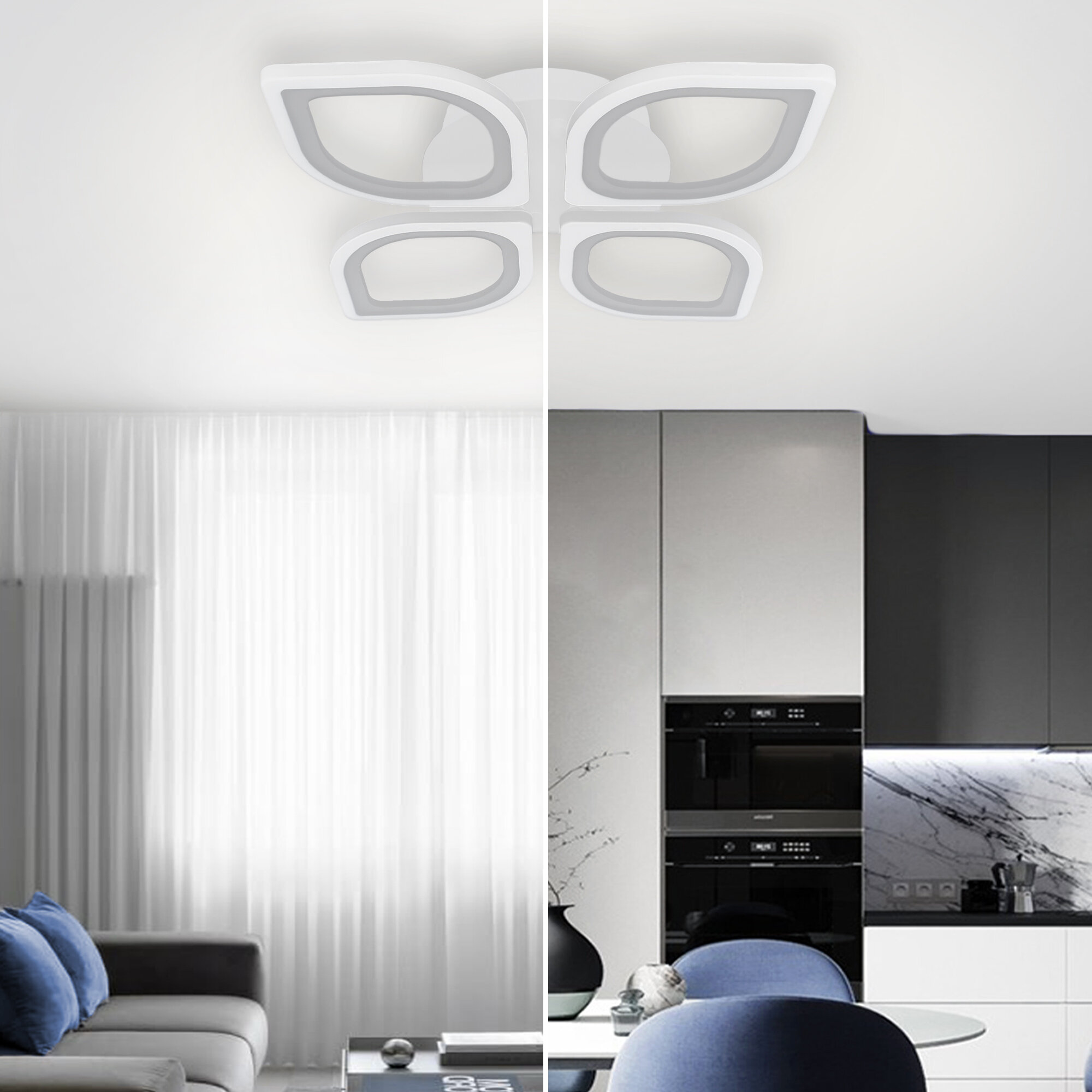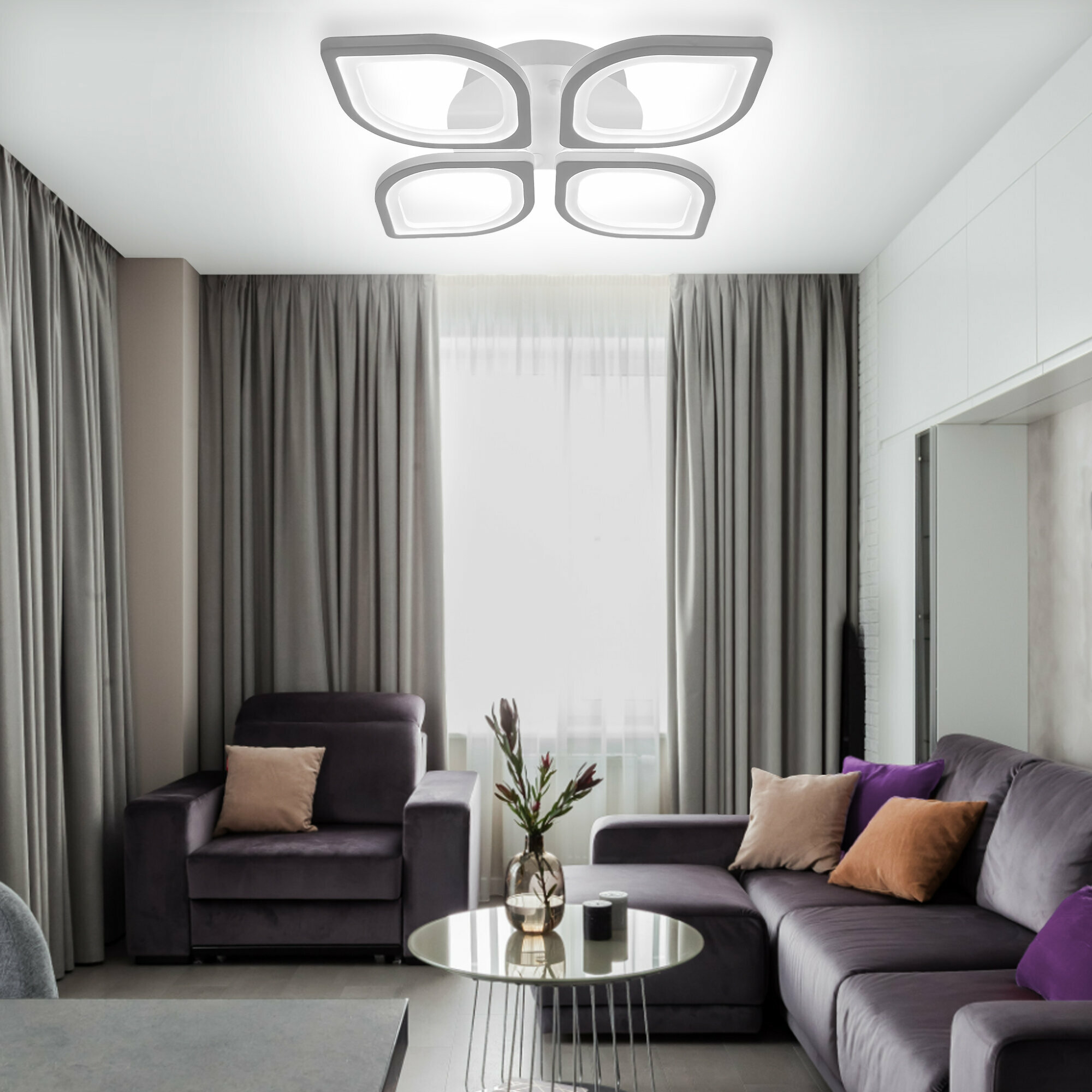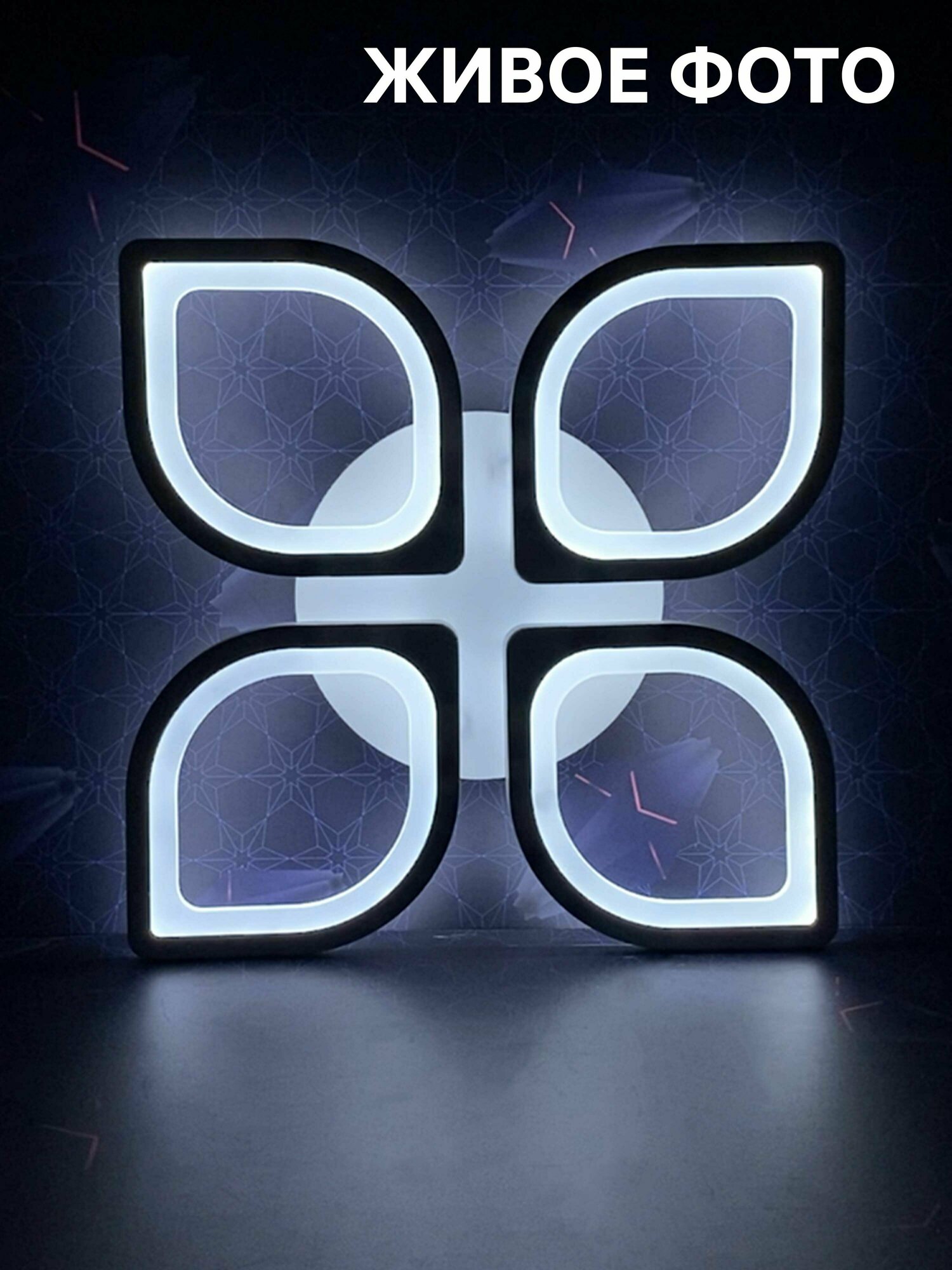 Люстра потолочная с диммером «Лепесток 01» размером 30,5 × 16,5 × 30,5 см оснащена встроенными светодиодами и управляется с помощью пульта ДУ. Крепление на планку дает возможность повесить люстру вплотную к потолку, а дизайнерский стиль устройства — придать уникальности интерьеру помещения.