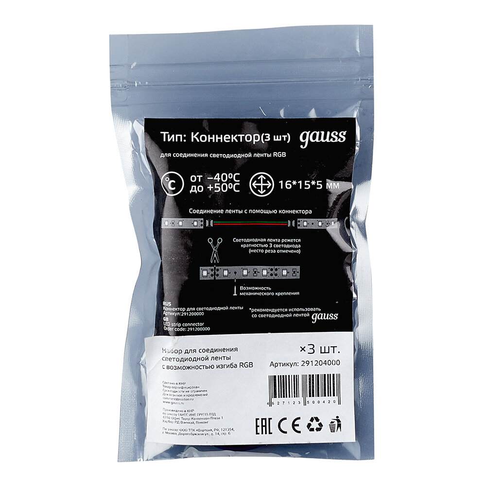 Коннектор гибкий для светодиодной ленты RGB Gauss (3 шт) 291204000