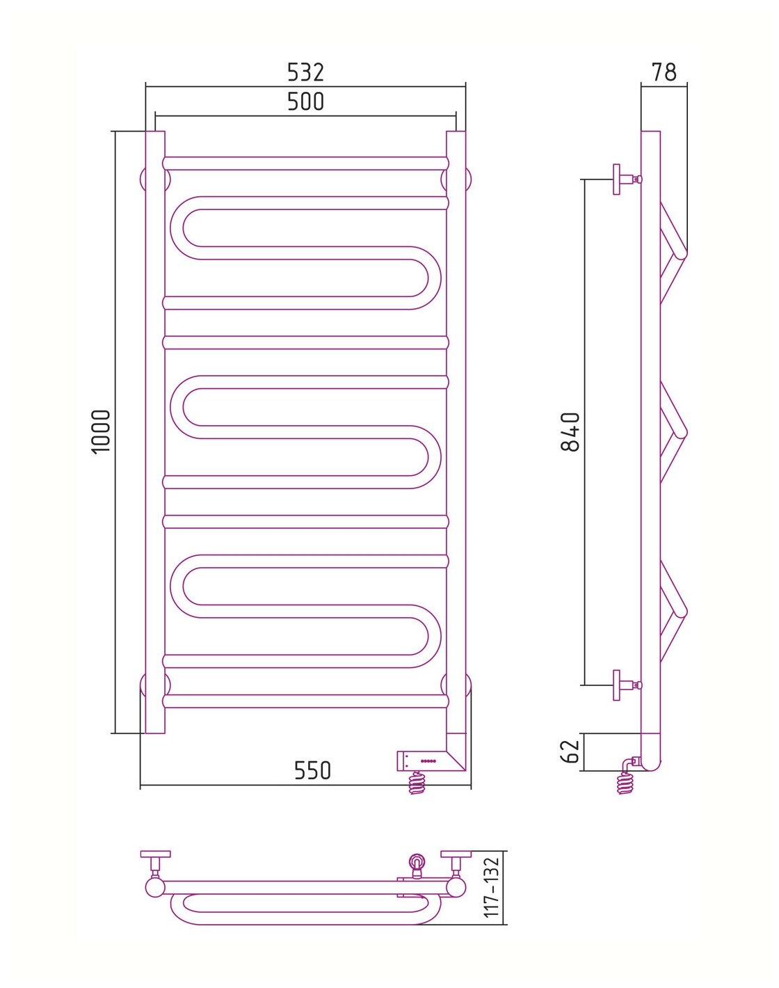 - Температура наружной поверхности полотенцесушителя: 55 градусов по Цельсию +/- 10%.
