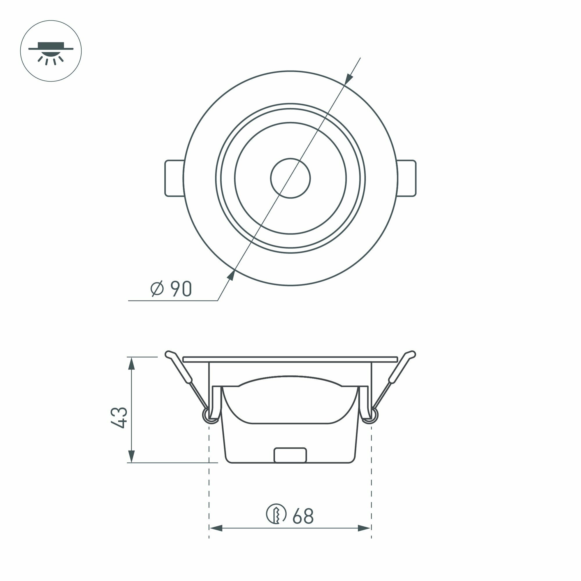 Встраиваемый светодиодный светильник Arlight LTD-Polar-Turn-R90-7W Warm3000 / 032310
