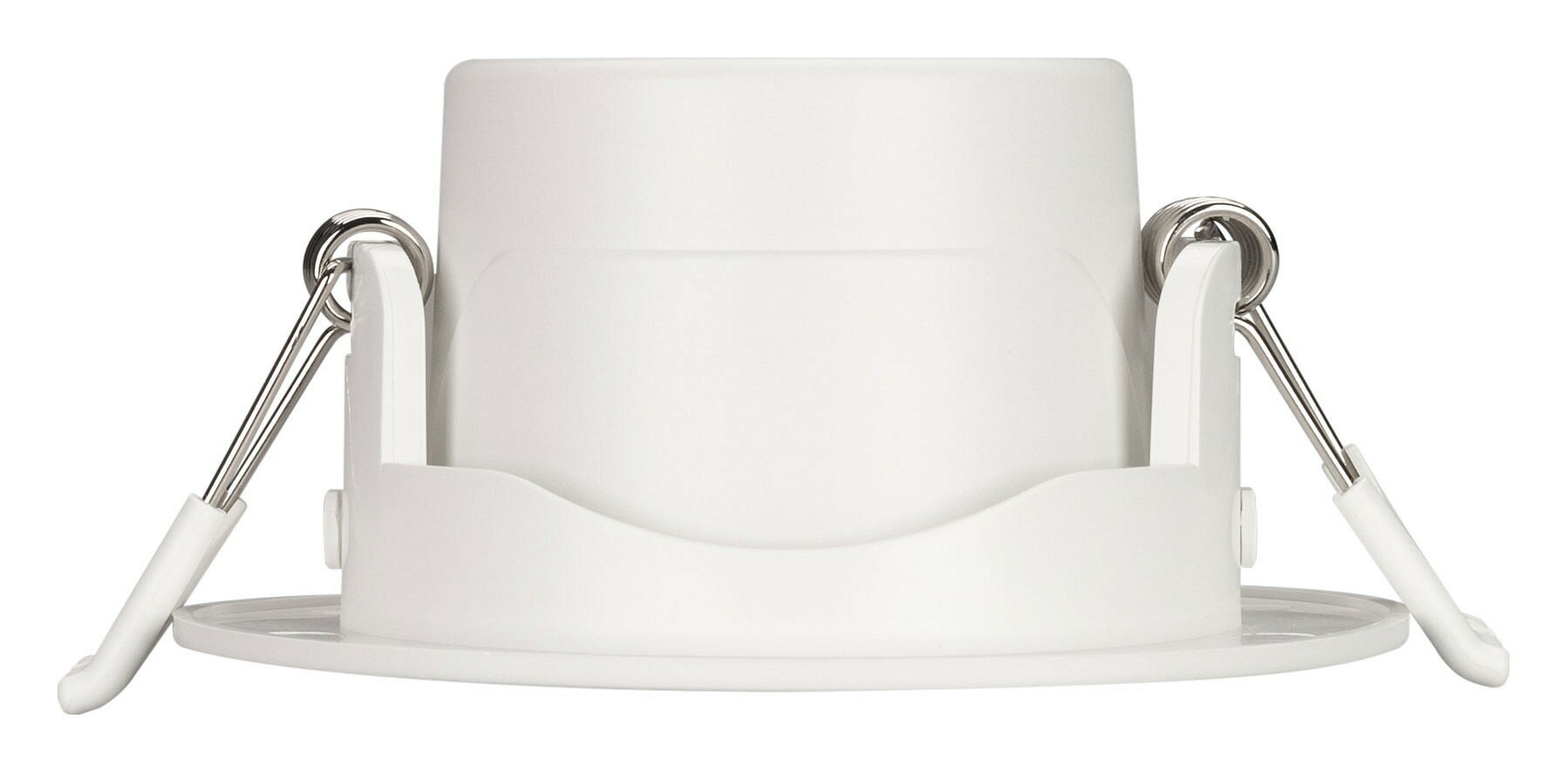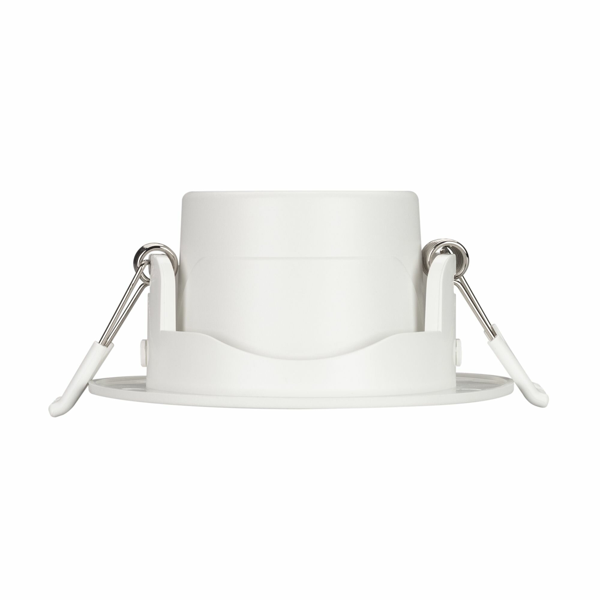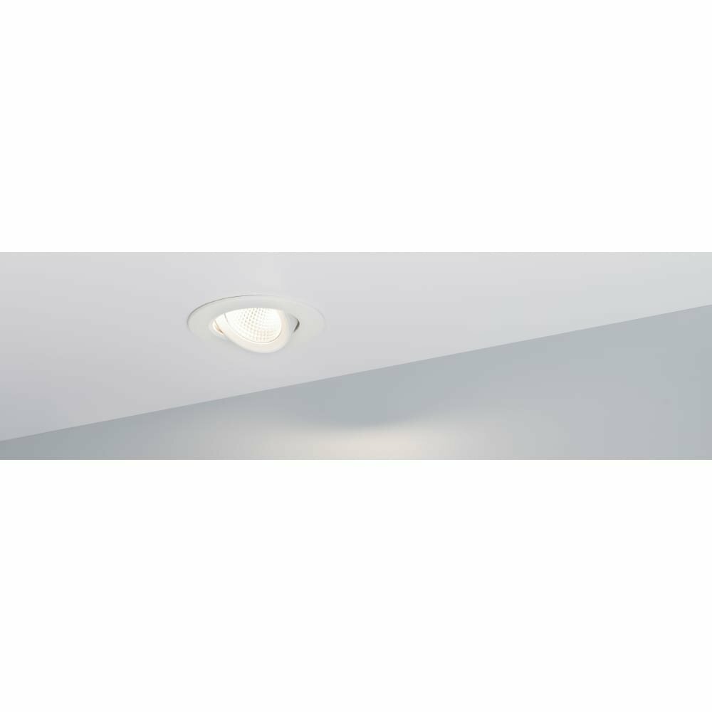Встраиваемый поворотный светильник LTD-POLAR-TURN-R90-7W Warm3000 (WH, 36 deg, 230V) мощностью 6.5 Вт, с теплым белым цветом свечения (3000 К) и низким коэффициентом дискомфорта UGR80, световым потоком 550 лм и узким углом излучения 36° предназначен для направленного освещения торговых, офисных, жилых и других помещений. Световой модуль может отклоняться на 30°, позволяя мгновенно менять направление света. Светильник легко устанавливается с помощью пружин в монтажное отверстие Ø 68-80 мм. Благодаря встроенному драйверу светильник безопасно и быстро подключается напрямую к сети переменного тока 230 В.