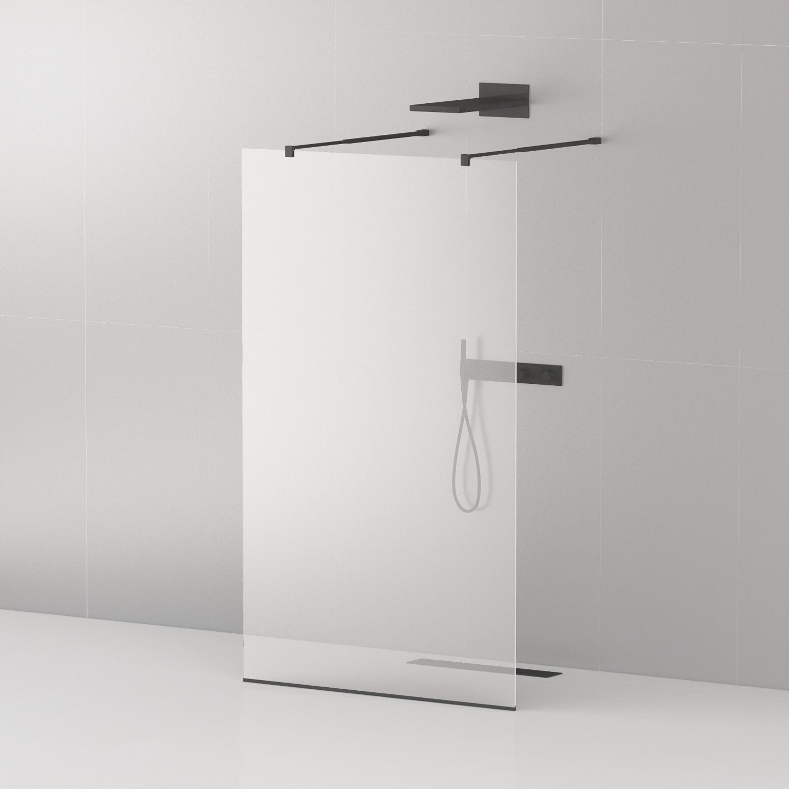Оригинальный телескопический кронштейн позволяет регулировать ширину душевой зоны и входа.