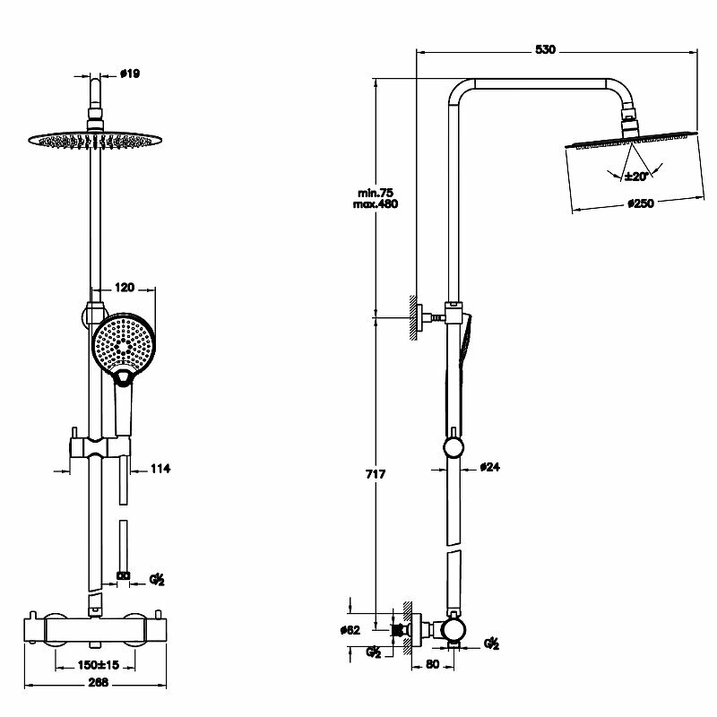 | Габариты верхнего душа | 250 |