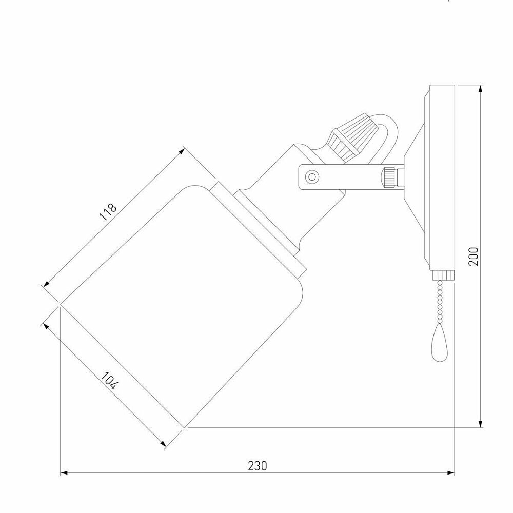 Корпус прибора изготовлен из металла. Материал отличается высокой прочностью и устойчивостью к механическим повреждениям. Плафон выполнен из матового стекла. Он имеет форму цилиндра. Наличие рожка позволяет регулировать направление света. Другие технические параметры модели: