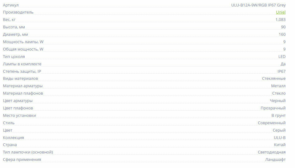 | Артикул | ULU-B12A-9W-RGB IP67 Grey |