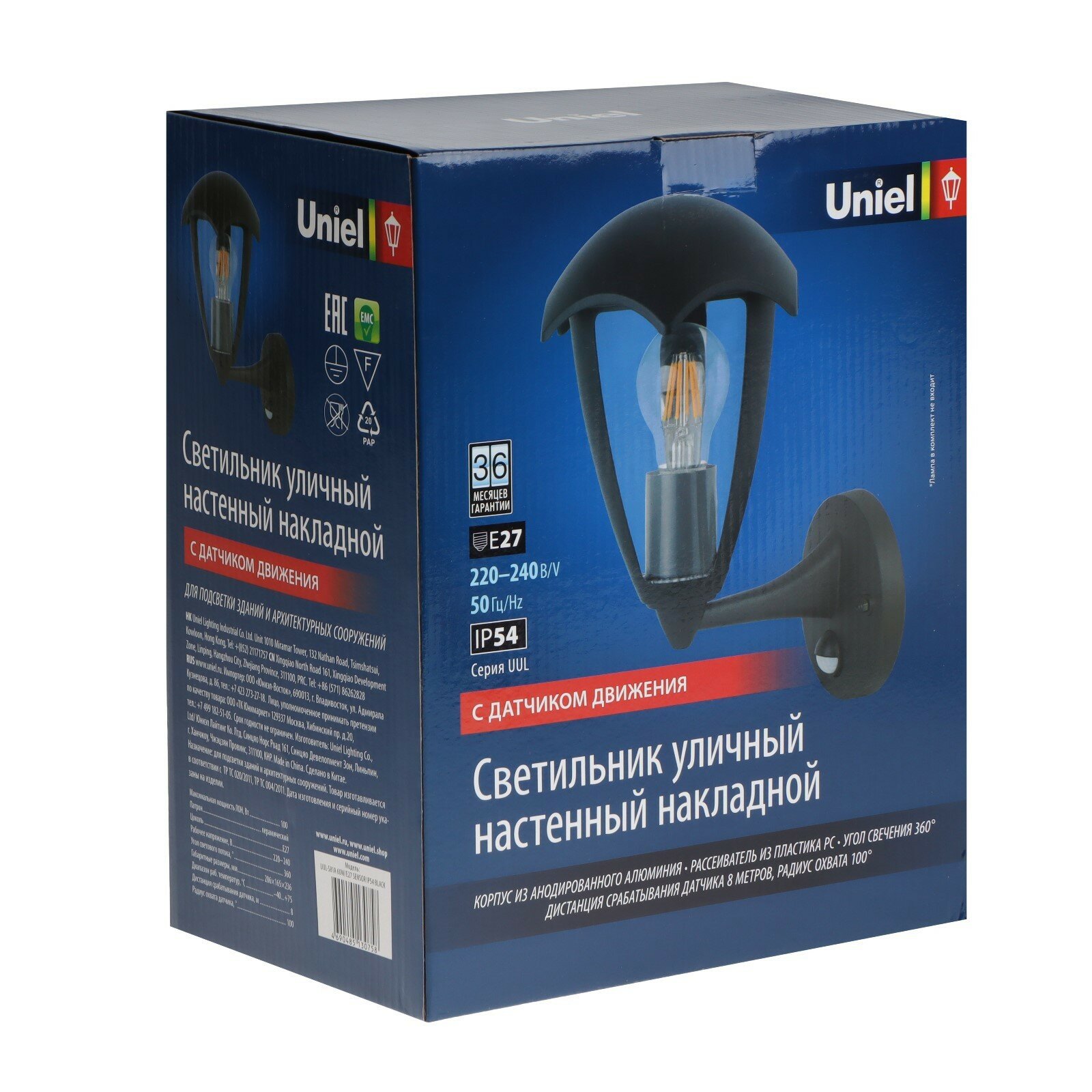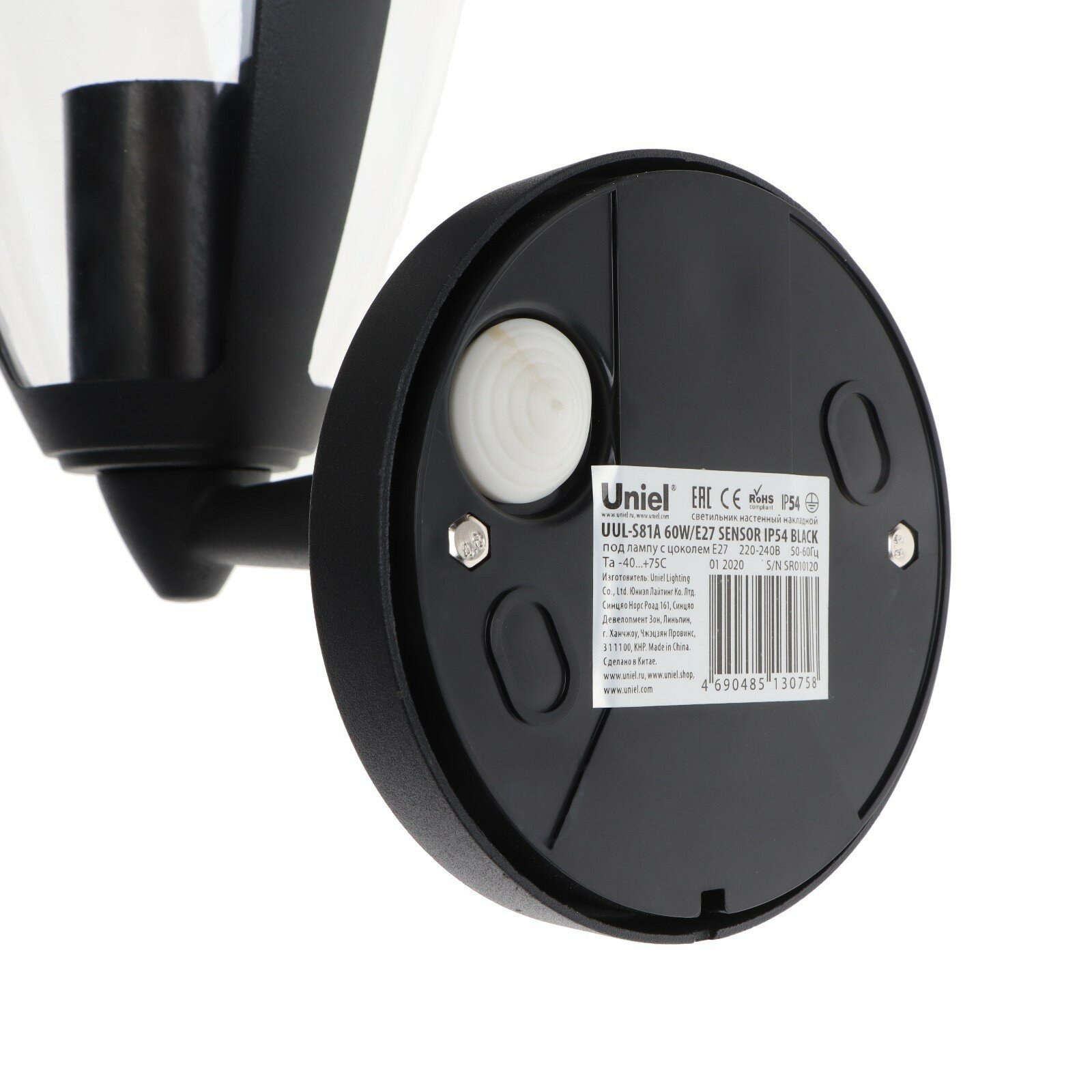 Уличный настенный светильник (UL-00006813) Uniel UUL-S81A 60W/E27 Sensor IP54 Black