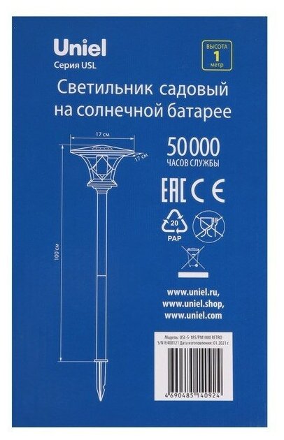 Сервис сравнения цен СкидкаГИД предлагает сравнить цены на товар «Светильник на солнечных батареях Uniel Special UL-00007869 USL-S-185/PM1000 Retro»