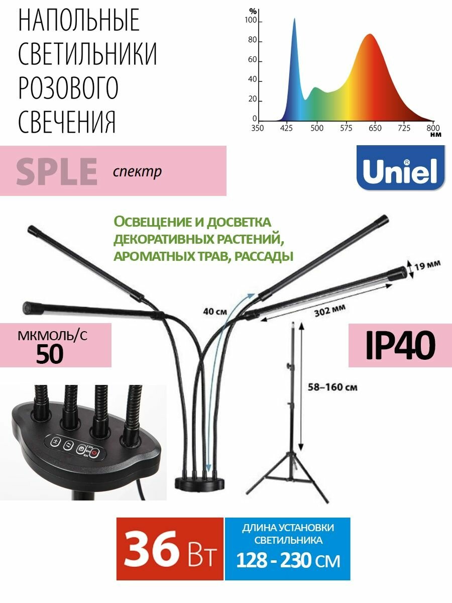 Светильник для растений светодиодный Minigarden - продукт известной компании Uniel (Китай). Имеет максимальную мощность 36 Вт. Отлично подойдет для таких мест, как офис. Впишется в интерьеры следующих стилей: современный.