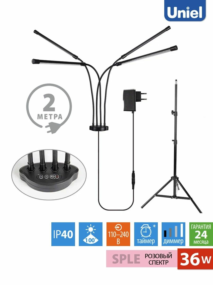Светодиодный светильник для растений Uniel Minigarden UL-00008905 ULT-P32-36W/SPLE/TM/40 IP40 Black Quad