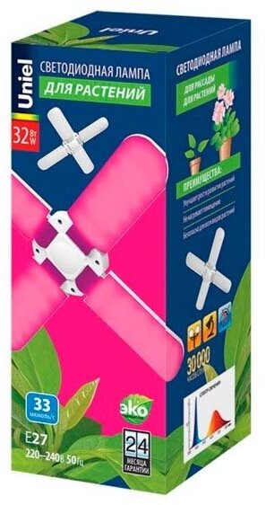 Сервис сравнения цен СкидкаГИД предлагает сравнить цены на товар «Лампа светодиодная для растений (UL-00007408) Uniel E27 32W матовая LED-P65-32W/SPSB/E27/FR/P4 PLP32WH»
