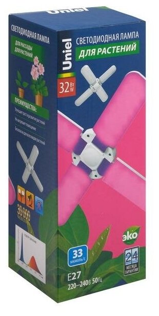 Лампа светодиодная для растений (UL-00007408) Uniel E27 32W матовая LED-P65-32W/SPSB/E27/FR/P4 PLP32WH