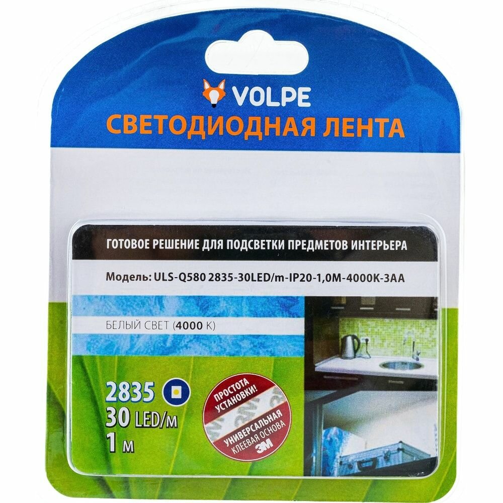 Светодиодная лента (UL-00006535) Volpe 24W/m 30LED/m белый 1M ULS-Q580 2835-30LED/m-IP20-1,0M-4000K-3AA