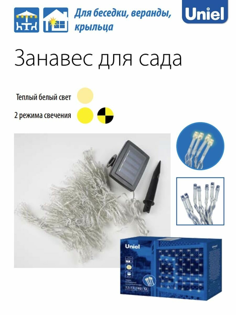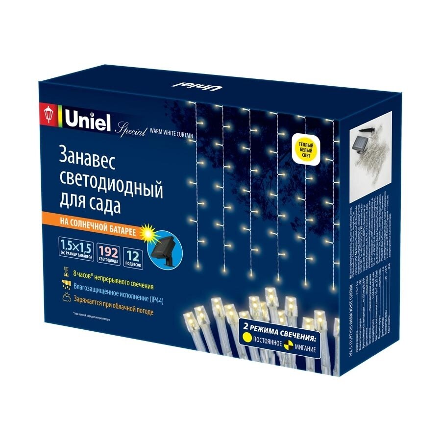 Сервис сравнения цен СкидкаГИД предлагает сравнить цены на товар «Гирлянда на солнечных батареях (UL-00006538) Uniel Занавес USL-S-131/PT1515 Warm White Curtain»
