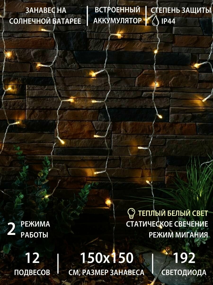 Гирлянда на солнечных батареях (UL-00006538) Uniel Занавес USL-S-131/PT1515 Warm White Curtain