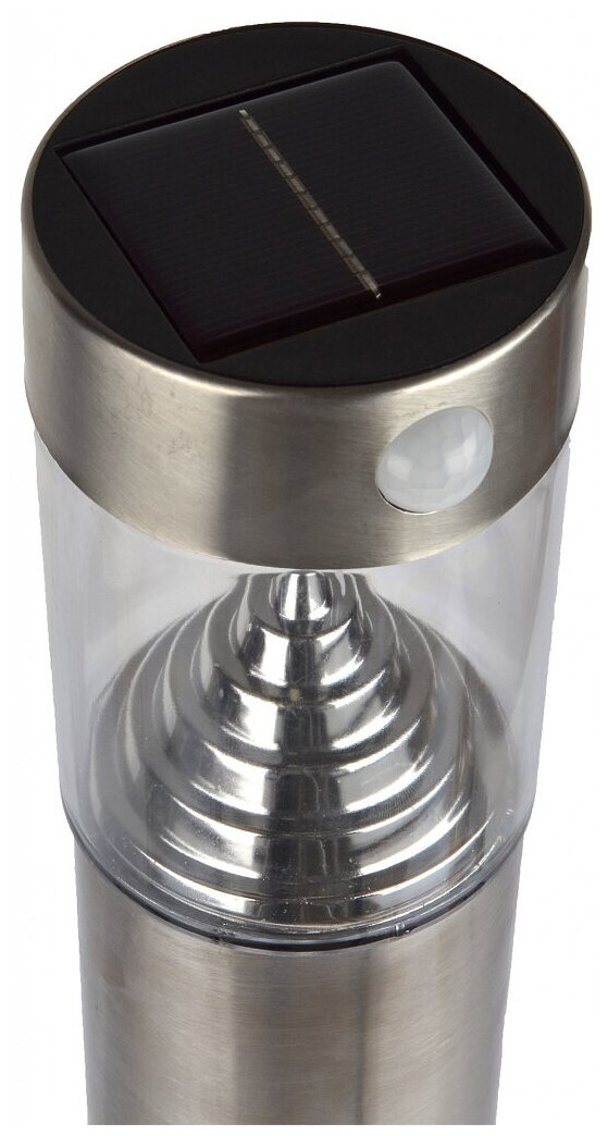 **Столб уличный Uniel Мт800Дд** предназначен для освещения территории около дома, сада, стоянки, зоны отдыха. Работает на солнечных батареях, оборудован датчиками движения и освещенности. Выполнен в современном стиле. Источник света — встроенные светодиоды мощностью 0,4 Вт. Корпус металлический. Светильник защищен от дождевой воды (степень защиты IP44). Размер светильника — 7,6 × 8 × 7,6 см, цвет серый.