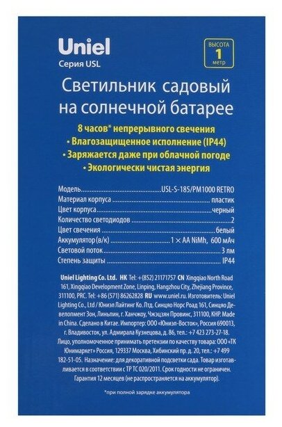 Сервис сравнения цен СкидкаГИД предлагает сравнить цены на товар «Светильник на солнечных батареях Uniel Special UL-00007870 USL-S-186/PM180 Retro»