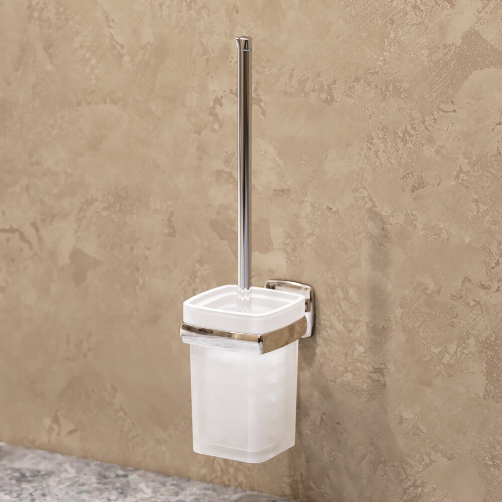 Стойка с туалетной щеткой Am.Pm Gem универсальная повторяет линии смесителей коллекции Gem, подчеркивая единую концепцию дизайна.