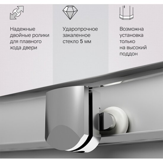 - Надежные хромированные двойные ролики – не менее 150 000 открываний