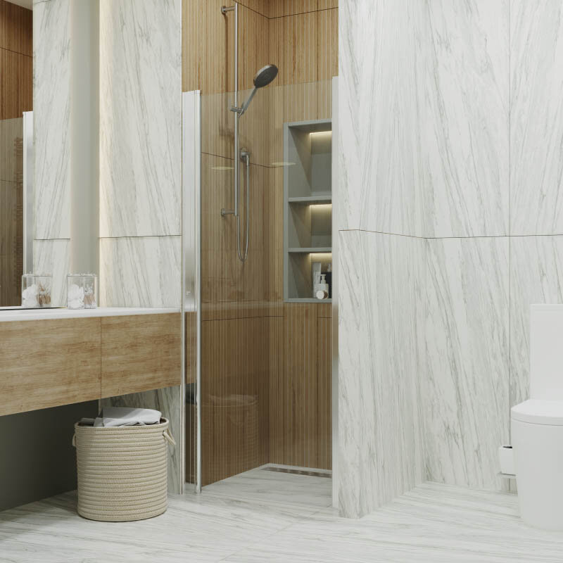 Душевая дверь шириной 80см из закаленного стекла может использоваться для оборудования ниши 78-80см. Высота 185см. Прозрачная.