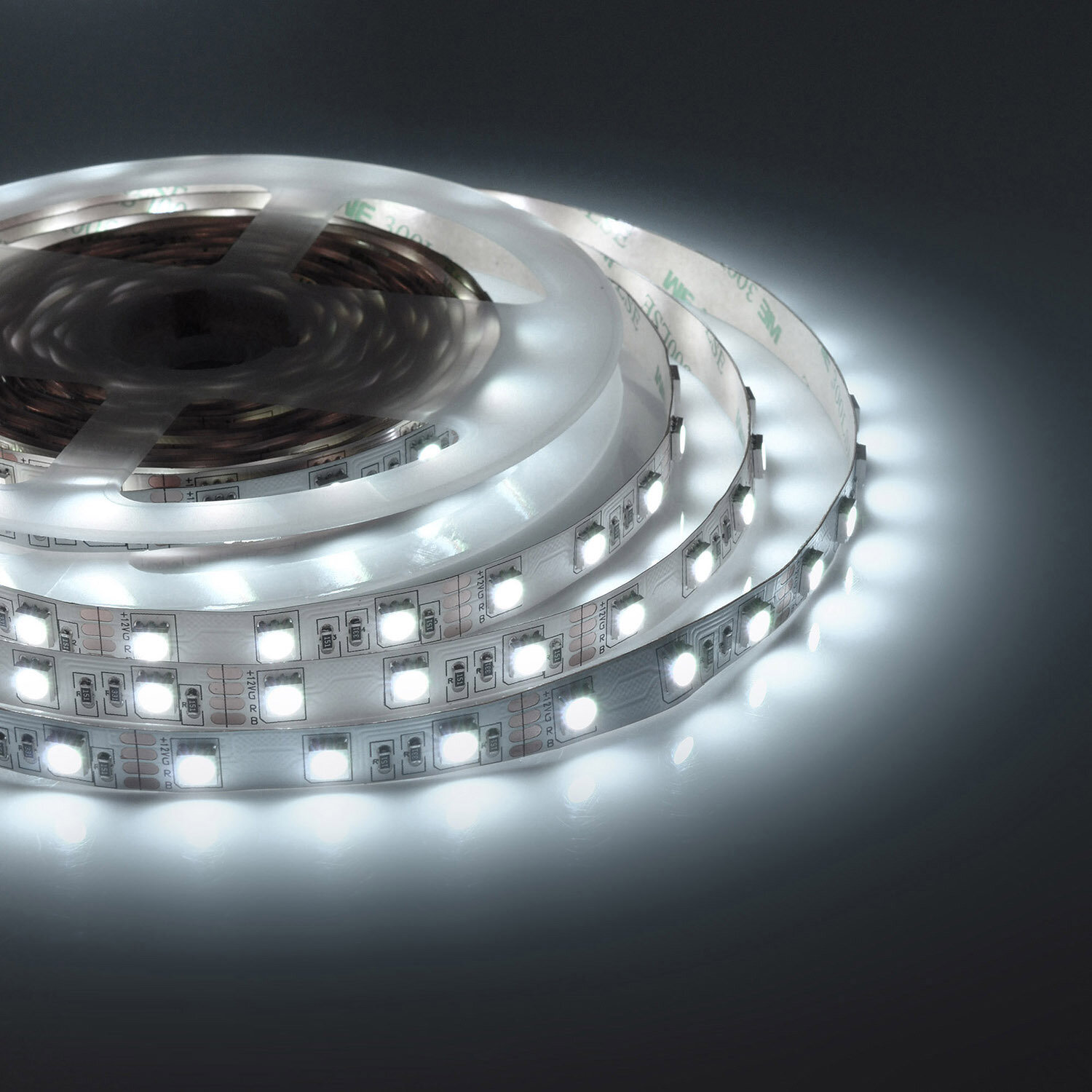 Светодиодная лента из линейки Стандарт с артикулом работает от постоянного тока с напряжением 12В. Благодаря светодиодам smd 5050 излучающим световой поток равный 700 Лм/м* лента является прекрасным решением для организации основного освещения и ярких декоративных подсветок. Она подойдет для создания основного освещения на базе многоуровневых потолков, а также будет отличным выбором для освещения торгового оборудования или требующих большой яркости рекламных вывесок. По сравнению с лампами накаливания светодиодная лента эквивалентна лампам мощностью 70 Вт. Данная модель светодиодной ленты является многоцветной. Каждый светодиод такой ленты имеет 3 базовых цвета: синий, зеленый и красный. В зависимости от используемого контроллера можно получить до 256 различных оттенков свечения. При выборе светодиодной ленты важно учитывать такой параметр, как потребляемая мощность, чтобы правильно подобрать блок питания. У данной модели этот показатель равен 14,4 Вт на один метр. Степень защиты этого изделия соответствует стандарту IP20, что подразумевает использование только в сухих и проветриваемых помещениях. Отрезать светодиодную ленту можно в специально отмеченных местах, которые располагаются через каждые 50 мм. Компактные размеры светодиодной ленты с шириной 10 мм и основанием из гибкой, двухслойной, медной подложки дают огромное преимущество при создании любых дизайнерских фантазий.