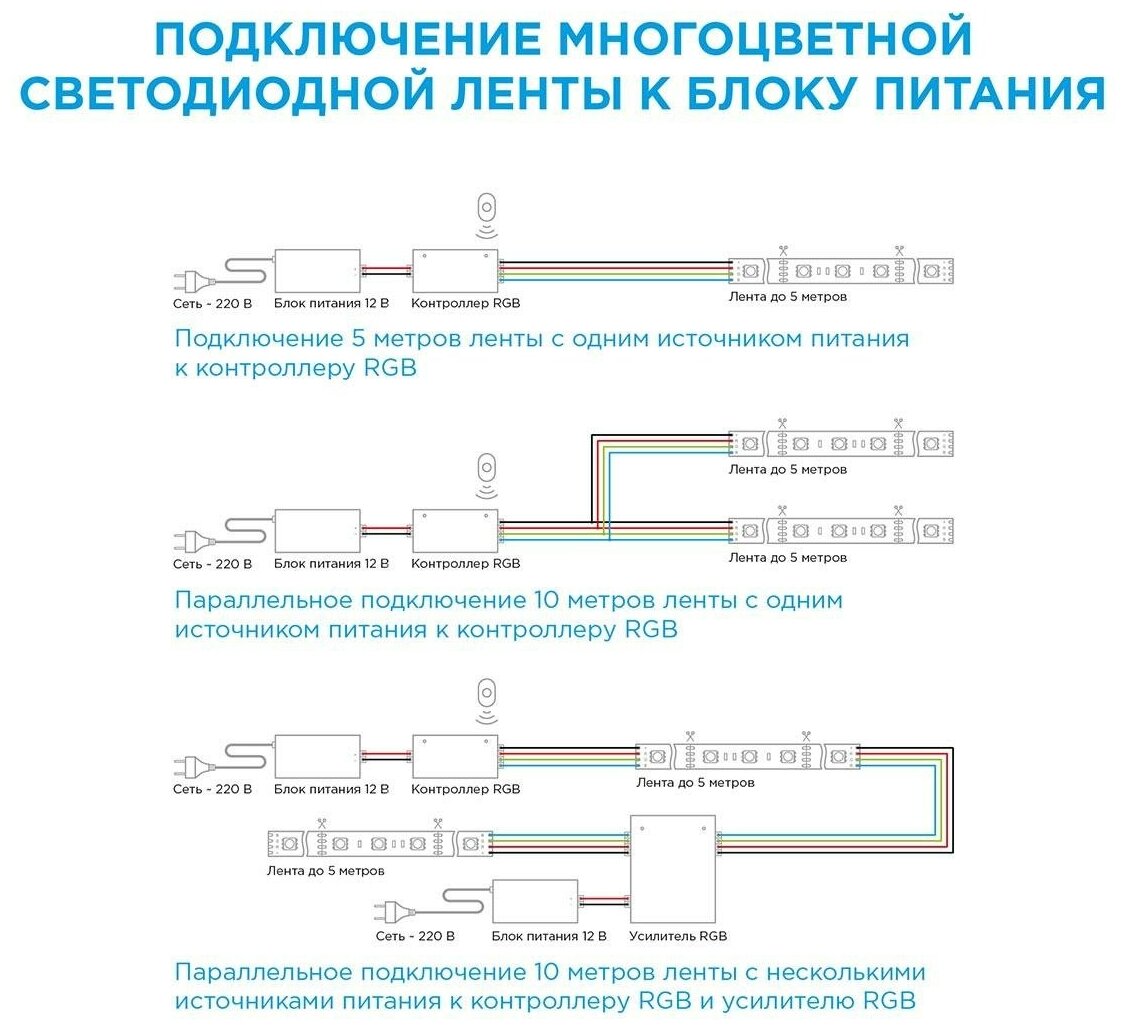 | Примечание | Обратите внимание! При выборе блока питания к светодиодной ленте ориентируйтесь на мощность самой ленты. |