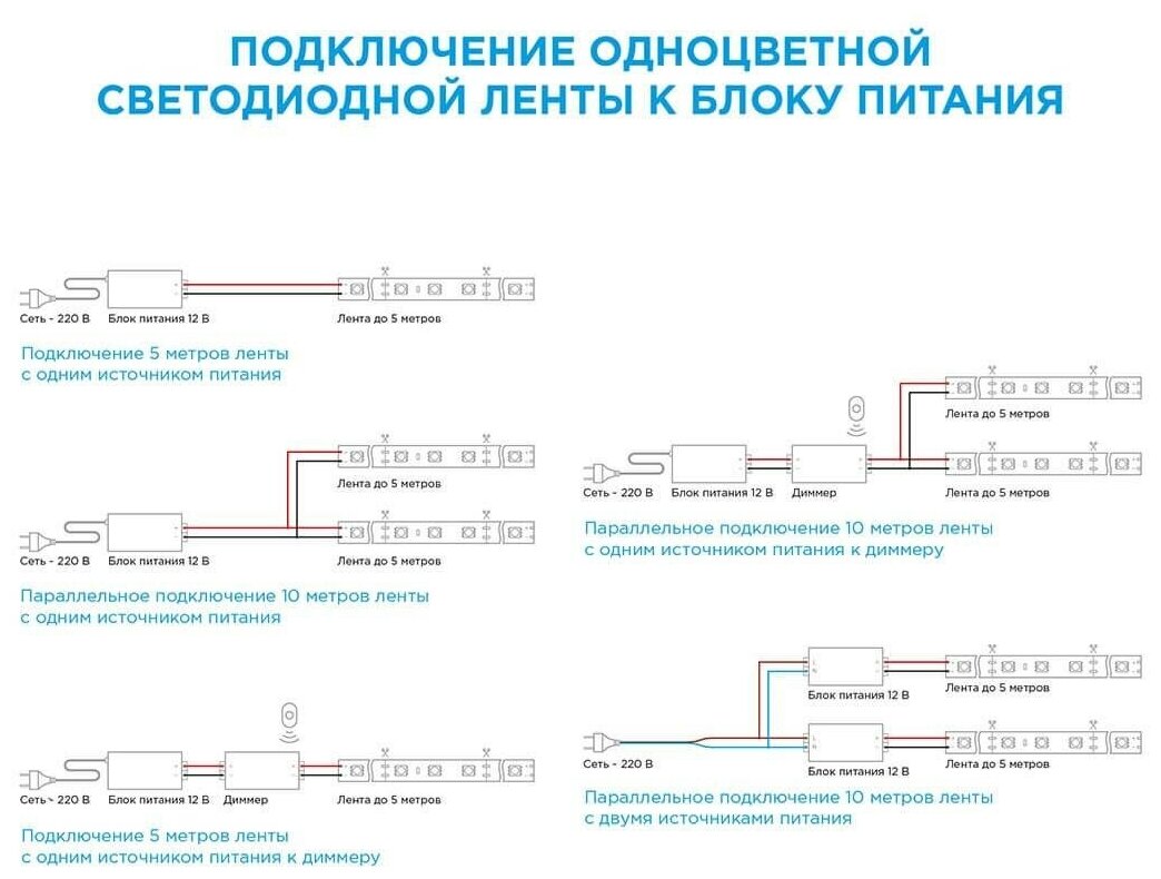 | Примечание | Обратите внимание! При выборе блока питания к светодиодной ленте ориентируйтесь на мощность самой ленты. |