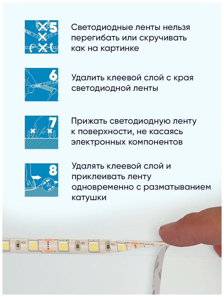 | Особенности | Включи и пользуйся! В комплекте есть все, для того, чтобы осуществить монтаж без дополнительных затрат; Идеальное решения для декорации здесь и сейчас в жилых помещениях; Высококачественные светодиоды San’an; Улучшенное охлаждение благодаря двухслойной медной подложке; Срок службы не менее 50 000 часов; Коннекторы и провода для подключения уже напаяны на светодиодную ленту; Простота монтажа благодаря качественному 3М скотчу; Экономия электроэнергии по сравнению с традиционными источниками свечения; Комфортная цветопередача благодаря CRI>80. |