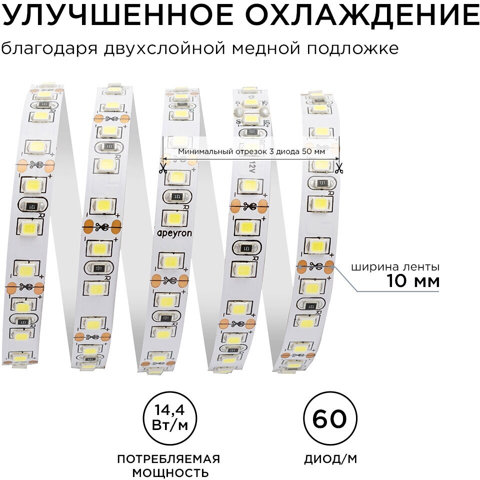 Светодиодная лента Apeyron 144W/m 60LED/m 5050SMD холодный белый 5M 15BL