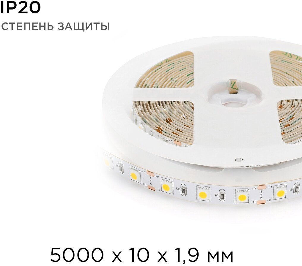 Светодиодная лента из линейки Стандарт с артикулом работает от постоянного тока с напряжением 12В. Благодаря светодиодам smd 5050 излучающим световой поток равный 700 Лм/м лента является прекрасным решением для организации основного освещения и ярких декоративных подсветок. Она подойдет для создания основного освещения на базе многоуровневых потолков, а также будет отличным выбором для освещения торгового оборудования или требующих большой яркости рекламных вывесок. По сравнению с лампами накаливания светодиодная лента эквивалентна лампам мощностью 70 Вт. Данная модель светодиодной ленты обладает теплым белым цветом свечения с цветовой температурой 3000 К. При выборе светодиодной ленты важно учитывать такой параметр, как потребляемая мощность, чтобы правильно подобрать блок питания. У данной модели этот показатель равен 14,4 Вт на один метр. Степень защиты этого изделия соответствует стандарту IP20, что подразумевает использование только в сухих и проветриваемых помещениях. Отрезать светодиодную ленту можно в специально отмеченных местах, которые располагаются через каждые 50 мм. Компактные размеры светодиодной ленты с шириной 10 мм и основанием из гибкой, двухслойной, медной подложки дают огромное преимущество при создании любых дизайнерских фантазий.