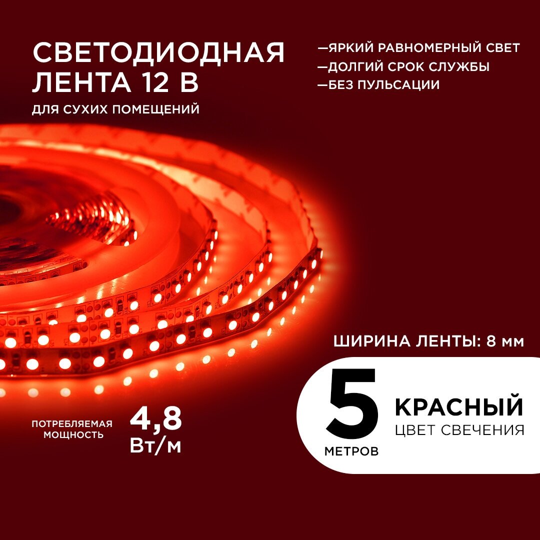 Светодиодная лента Apeyron 48W/m 60LED/m 3528SMD красный 5M 35BL