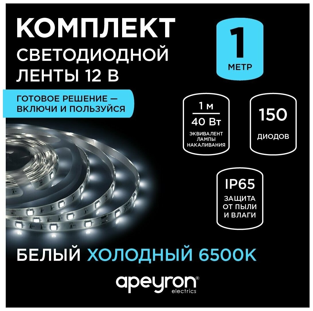 Сервис сравнения цен СкидкаГИД предлагает сравнить цены на товар «Светодиодная влагозащищенная лента Apeyron 72W/m 30LED/m 5050SMD холодный белый 5M 10-01»