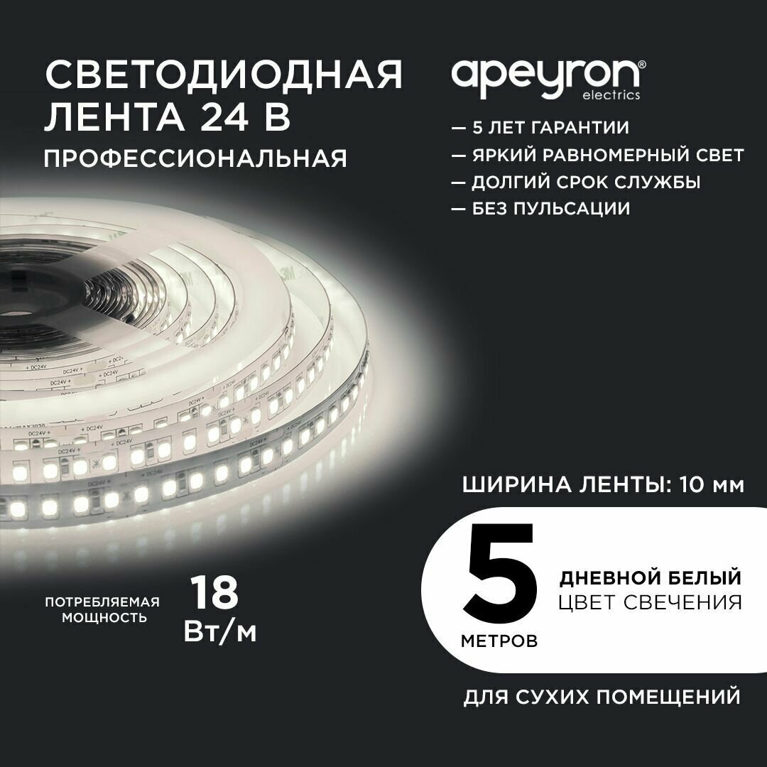 Светодиодная лента Apeyron 18W/m 168LED/m 2835SMD дневной белый 5M 00-313