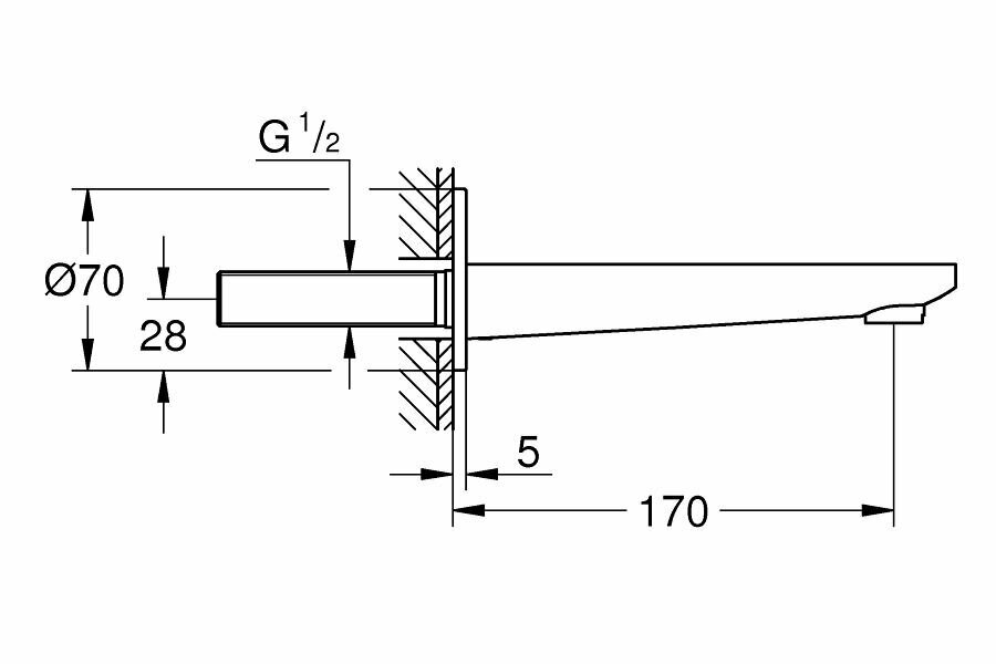 - Вид излива: настенный неповоротный.