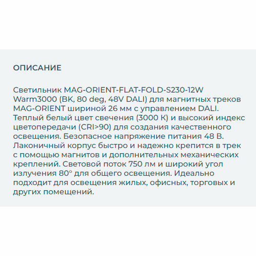 | Наименование модели | MAG-ORIENT-FLAT-FOLD-S230-12W |
