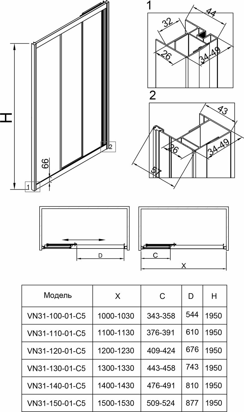 Раздвижная душевая дверь Veconi Vianno VN-31 130 выполнена из анодированного алюминиевого профиля и закаленного стекла с хромированными алюминиевыми ручками. Два подвижных стекла с двойными регулируемыми роликами обеспечат бесшумное открытие и закрытие дверей, а магнитный уплотнитель, который плотно прилегает к профилю, обеспечит герметичное закрывание двери. Универсальная ориентация позволяет устанавливать душевую дверь в зависимости от особенностей помещения.