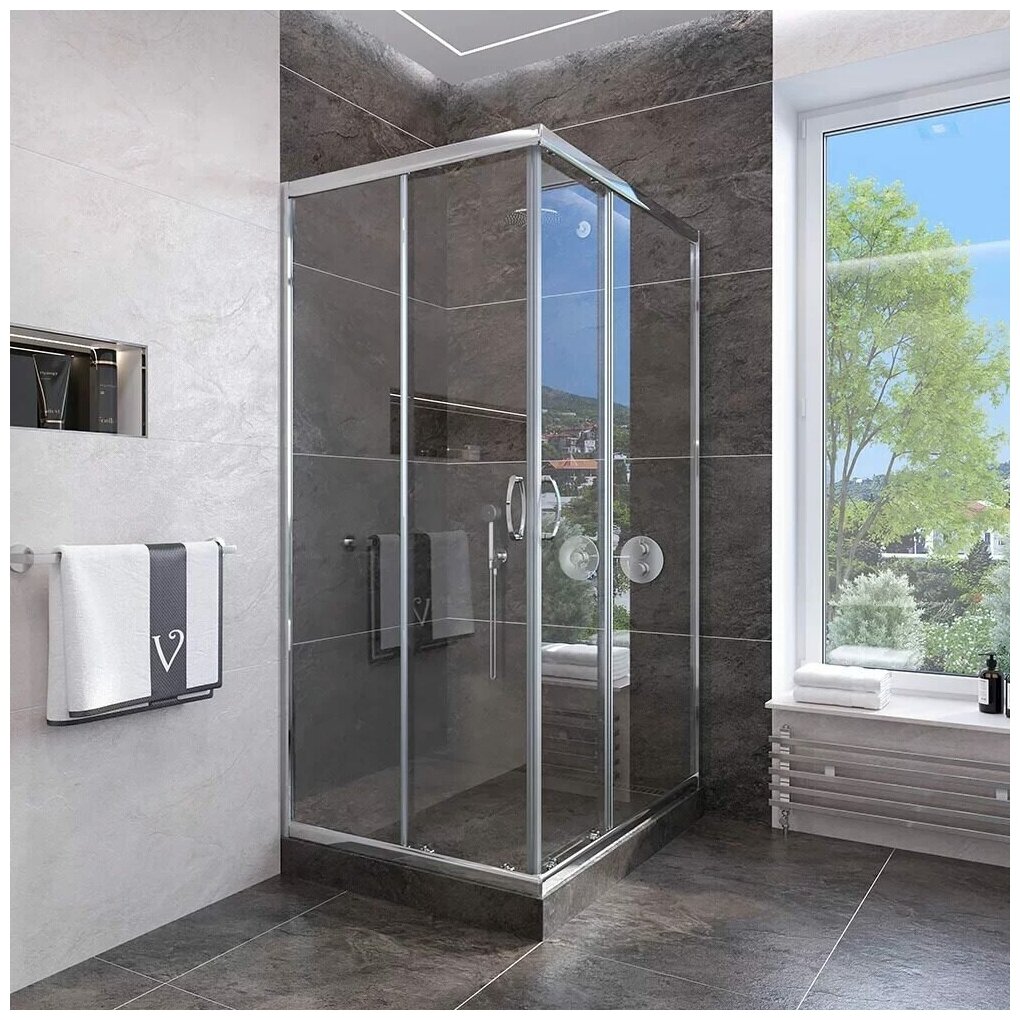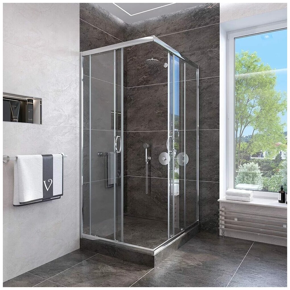 Сервис сравнения цен СкидкаГИД предлагает сравнить цены на товар «Душевой уголок Veconi Rovigo 80х80х185 профиль хром стекло прозрачное RV113-80-01-C4»