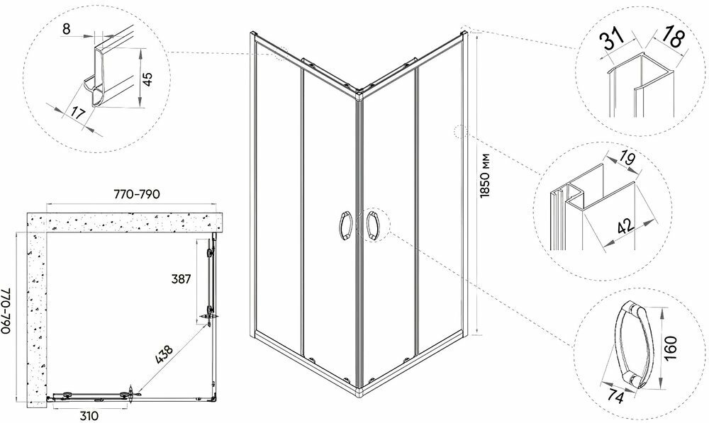 | ВКоробке | Душевой уголок - 1 шт. Инструкция - 1 шт. |