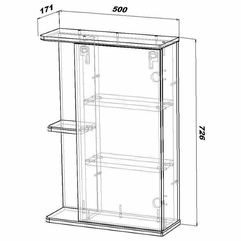 | ВКоробке | Зеркало-шкаф - 1 шт. Владная полка - 3 шт. Комплект доводчиков - 1 шт. Инструкция - 1 шт. |