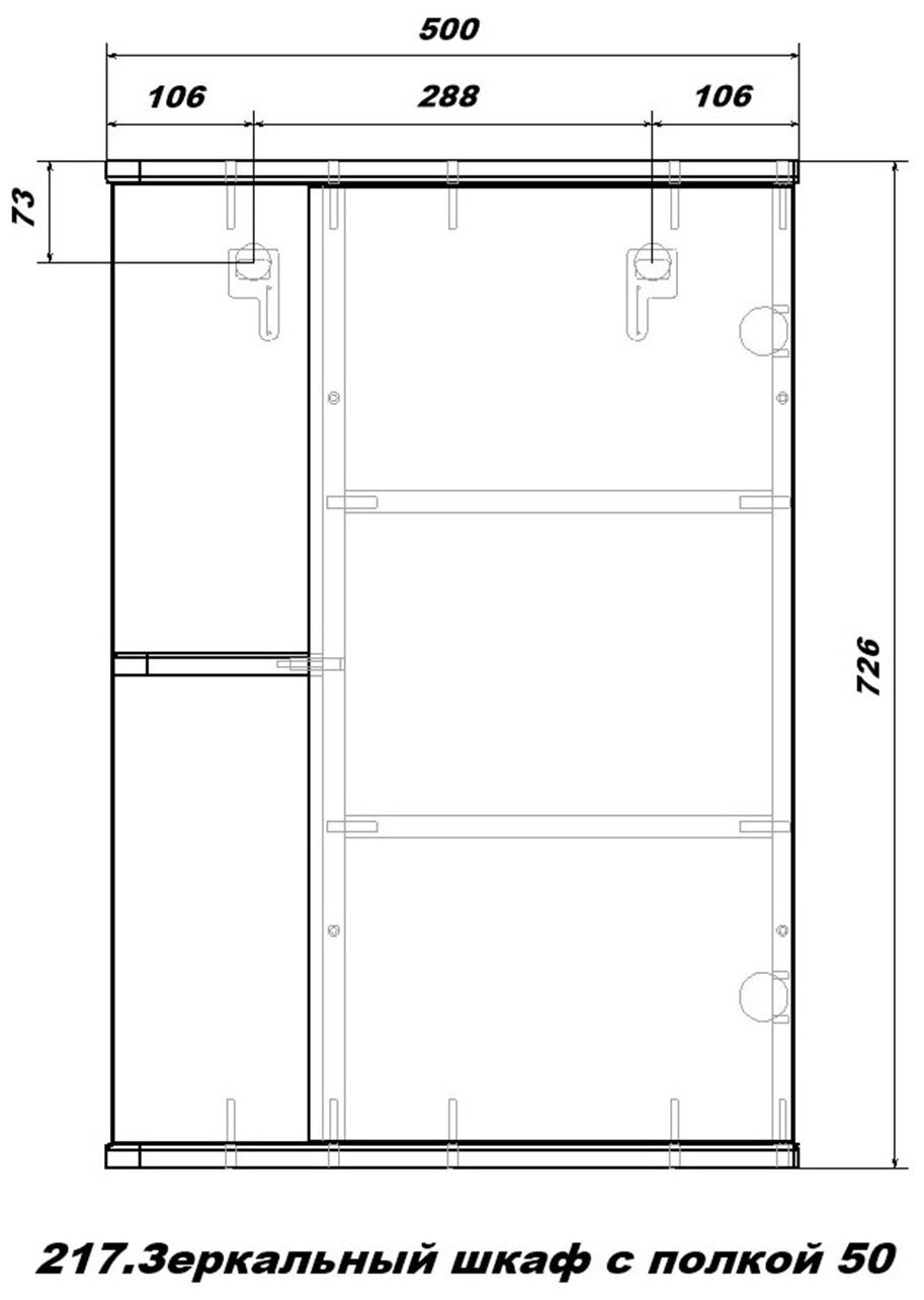 Зеркало-шкаф Sanstar 50 с полками белый 217.1-2.4.1.