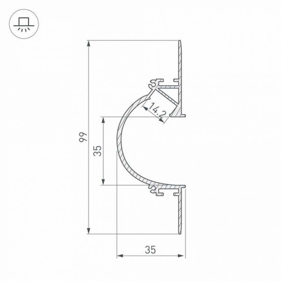 Алюминиевый профиль для светодиодных лент и линеек с боковым свечением. Цвет-белый RAL9003 (порошковая окраска). Габаритные размеры (L×W×H): 2000x99x35 мм. Ширина площадки для ленты 14,3 мм. Заглушки и другие аксессуары приобретаются отдельно. Цена за 1 метр.