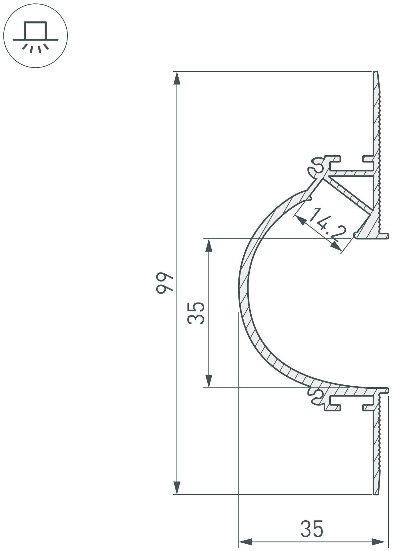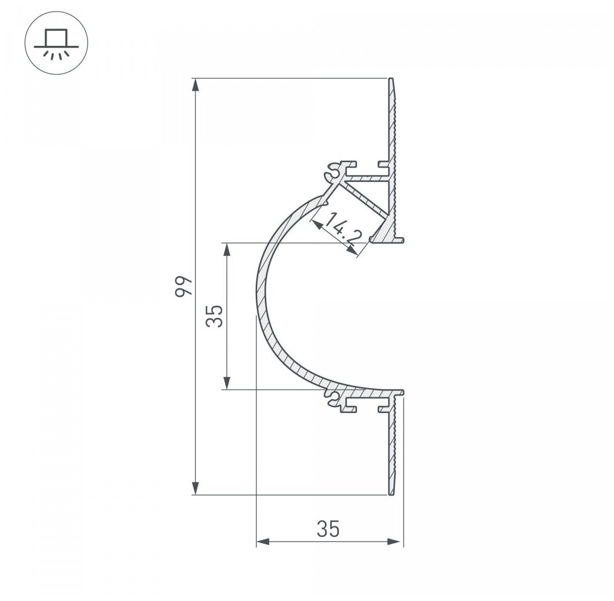 Встраиваемый алюминиевый профиль белого цвета со скрытым фланцем и боковым свечением для создания световых полос без видимых алюминиевых частей. Габаритные размеры профиля составляют 2000 мм в длину, 99 мм в ширину и 35 мм в высоту. Площадка для установки светодиодных лент позволяет использовать ленту шириной до 14,2 мм и мощностью до 58 Вт/м. Это обеспечивает гибкость в выборе светодиодных лент и создает потрясающие световые решения. Профиль используется без экрана. Отличное решение для создания современных световых проектов.