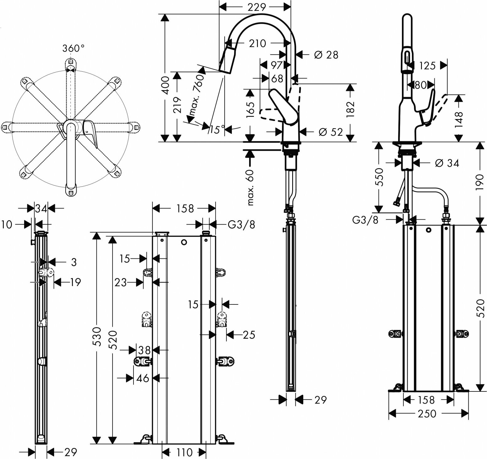 | Дополнительные функции | выдвижной излив, вращение излива |