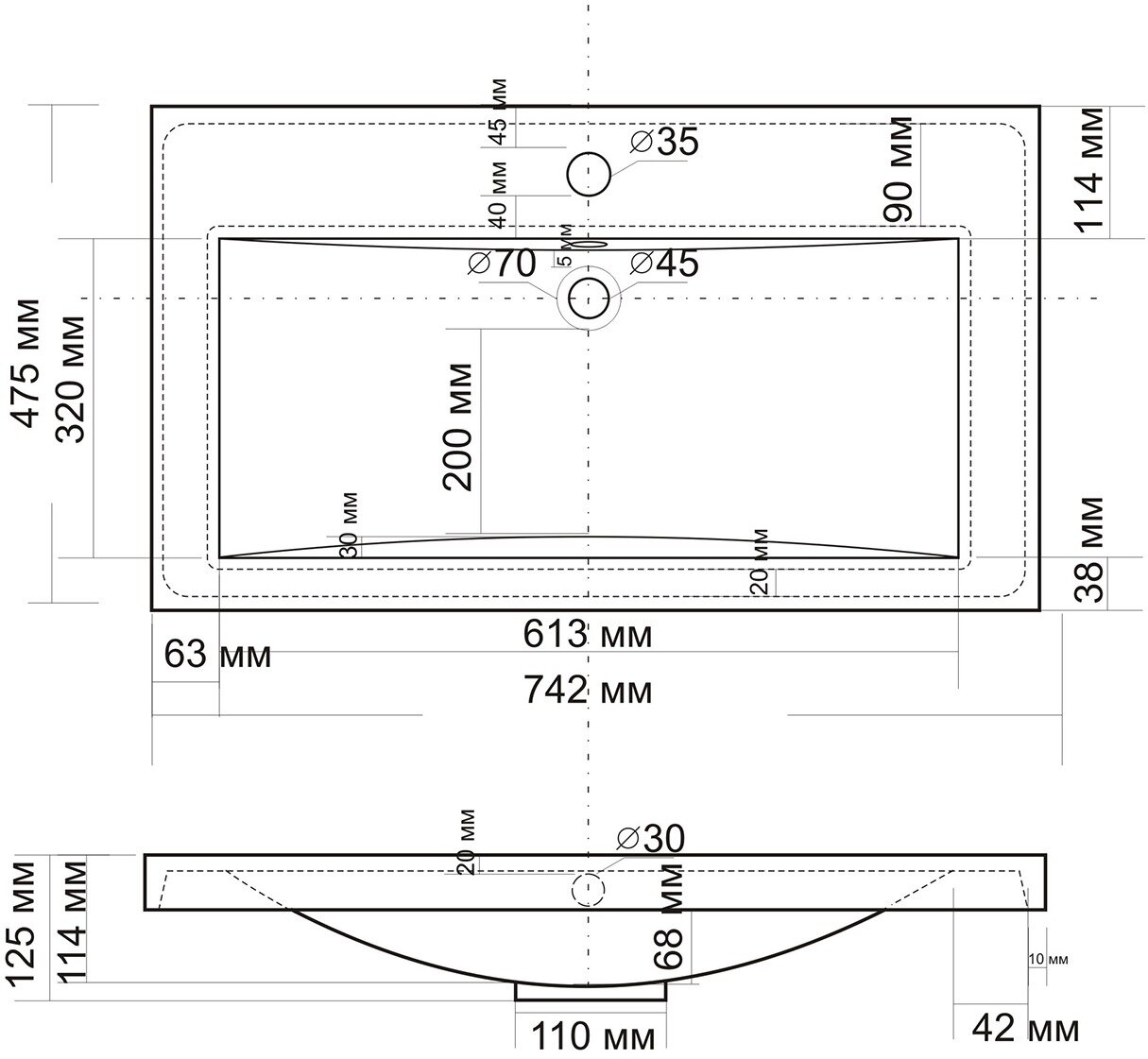 | Форма раковины | прямоугольная |