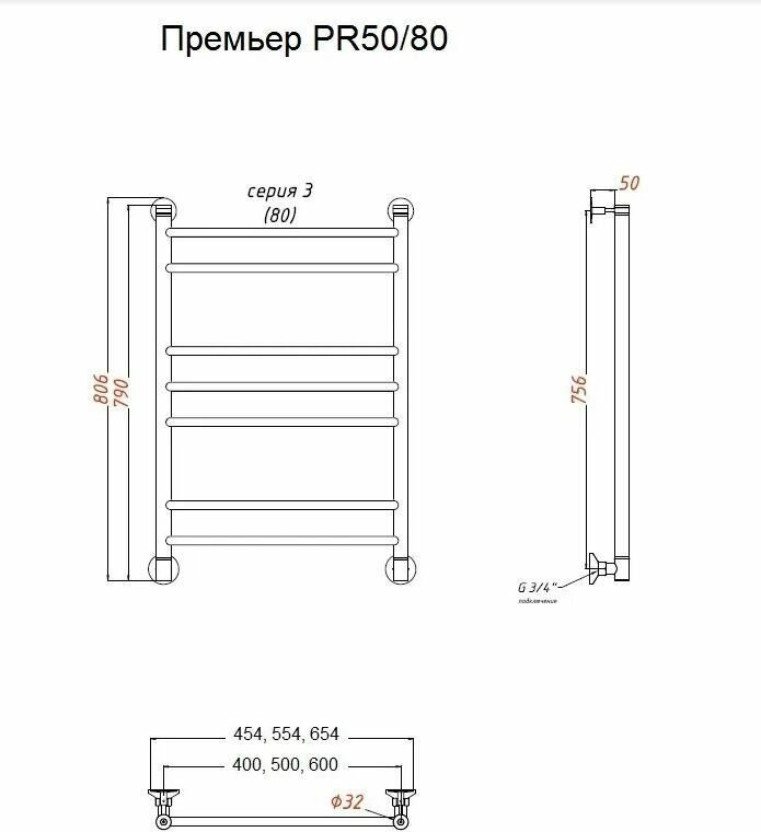 Полотенцесушитель водяной TermoSmart Премьер 50х80 PR50/80