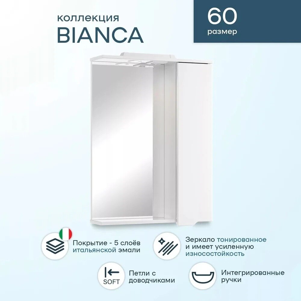 Зеркало-шкаф SanStar Bianca 60 П с подсветкой 1. Зеркало шкаф 2. ; Инструкция 1 штСмотри также характеристики.